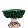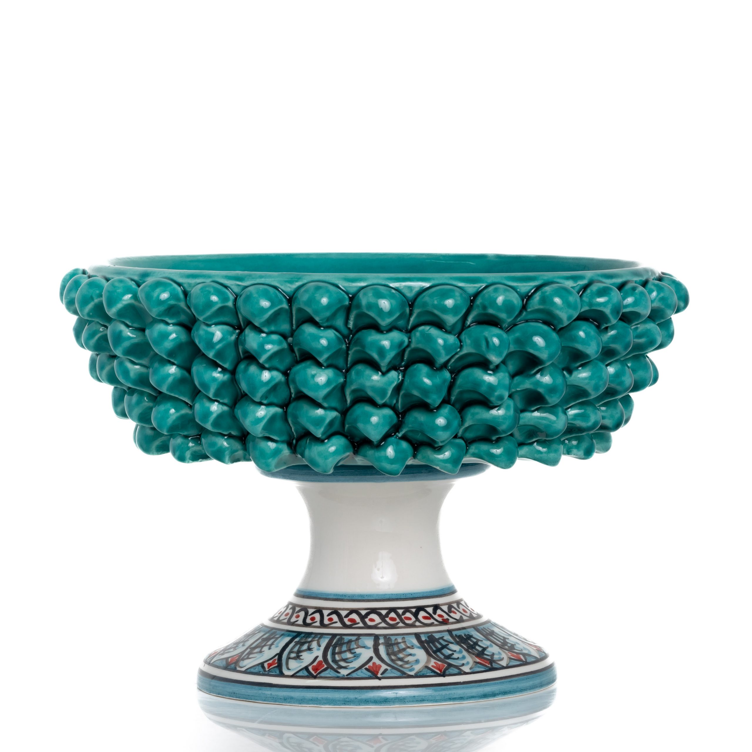 Alzata con piede decorato in ceramica mezza pigna Acqua Marina interamente realizzata e colorata a mano.
