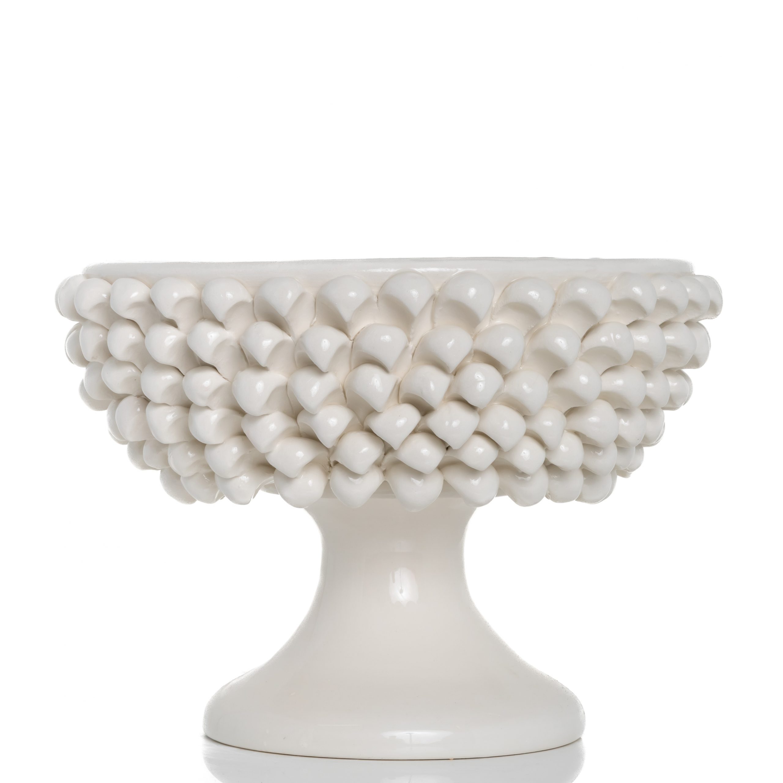 Alzata in ceramica mezza pigna Bianca interamente realizzata e colorata a mano.