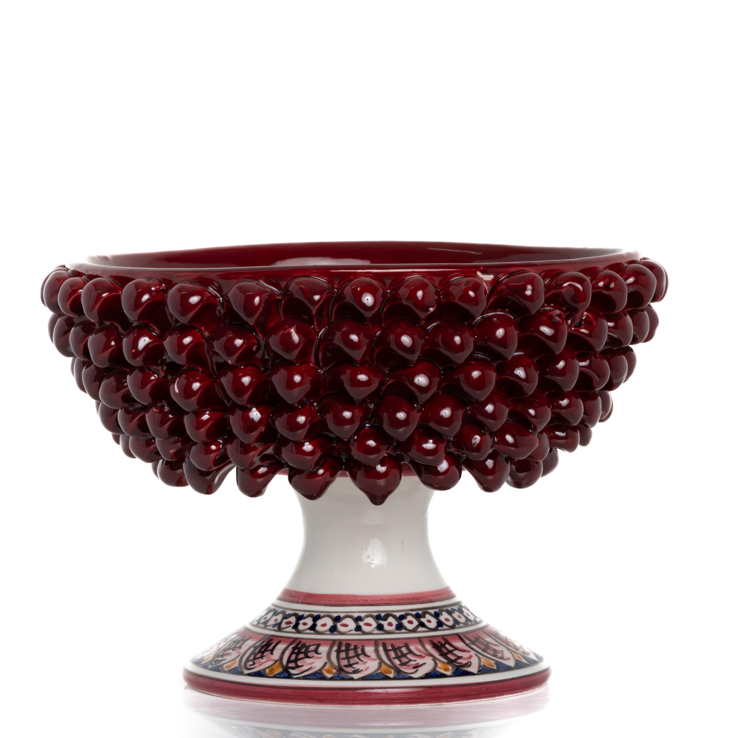Alzata con piede decorato in ceramica mezza pigna Bordò interamente realizzata e colorata a mano.