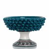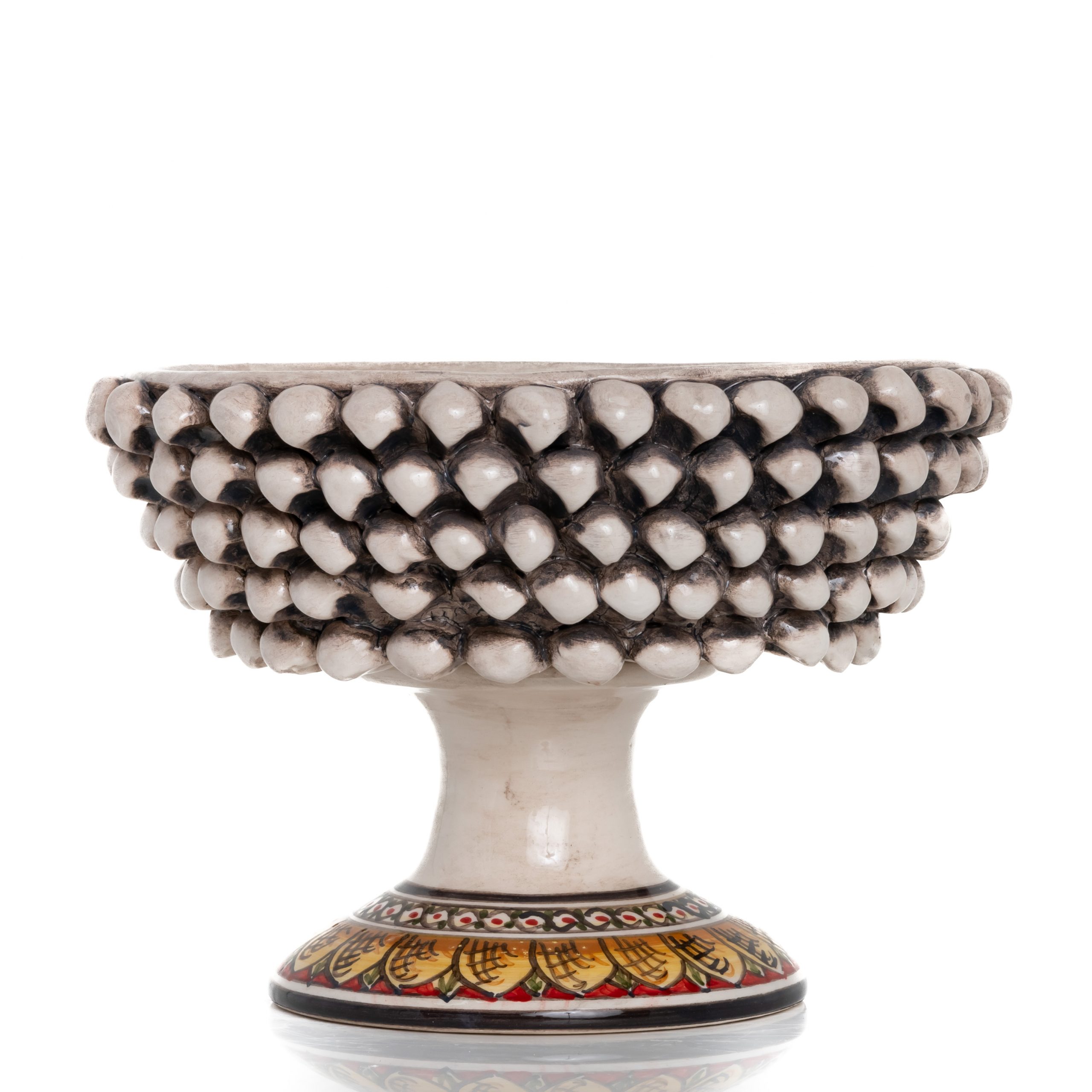 Alzata con piede decorato in ceramica mezza pigna Fumè interamente realizzata e colorata a mano.