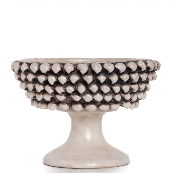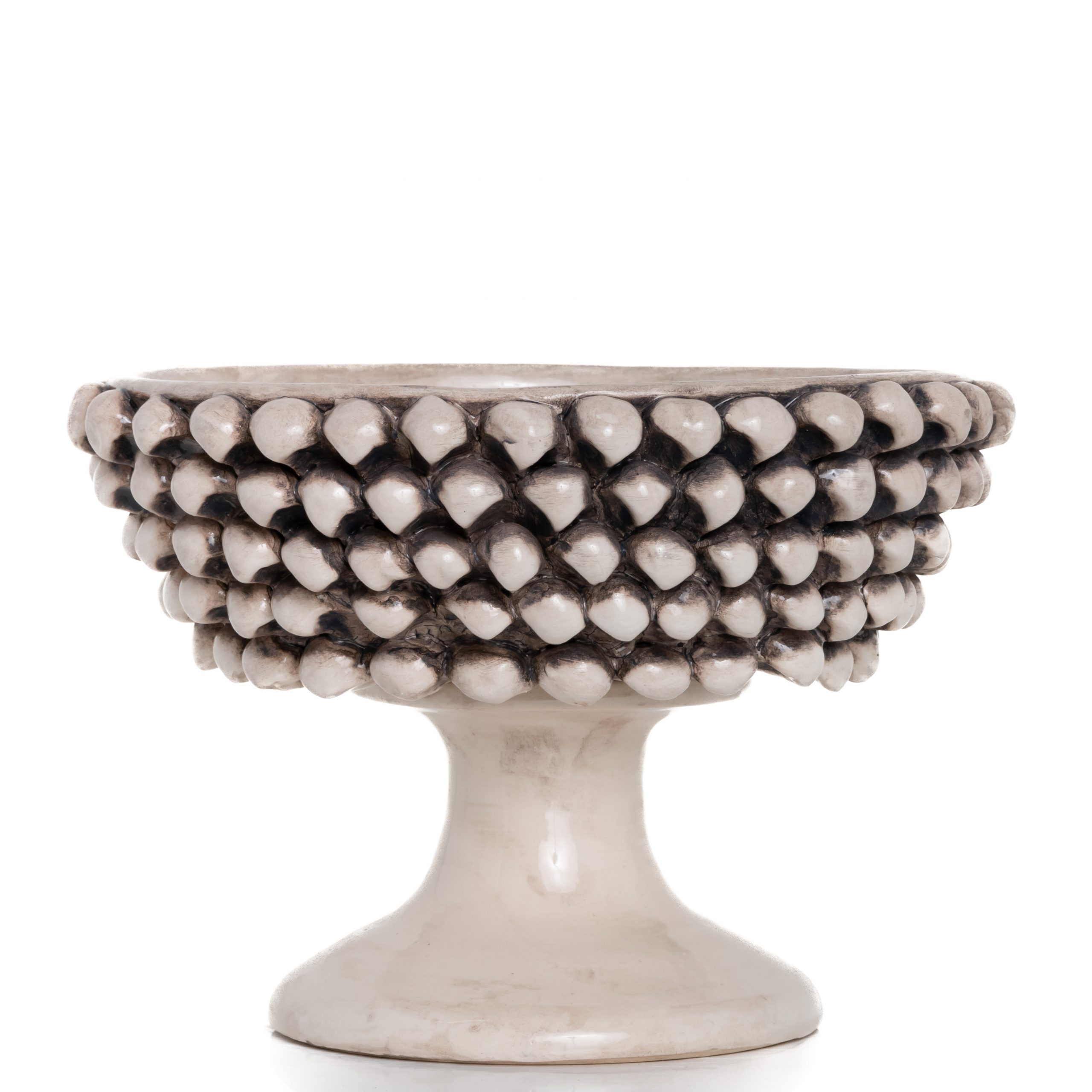 Alzata in ceramica mezza pigna Fumè interamente realizzata e colorata a mano.