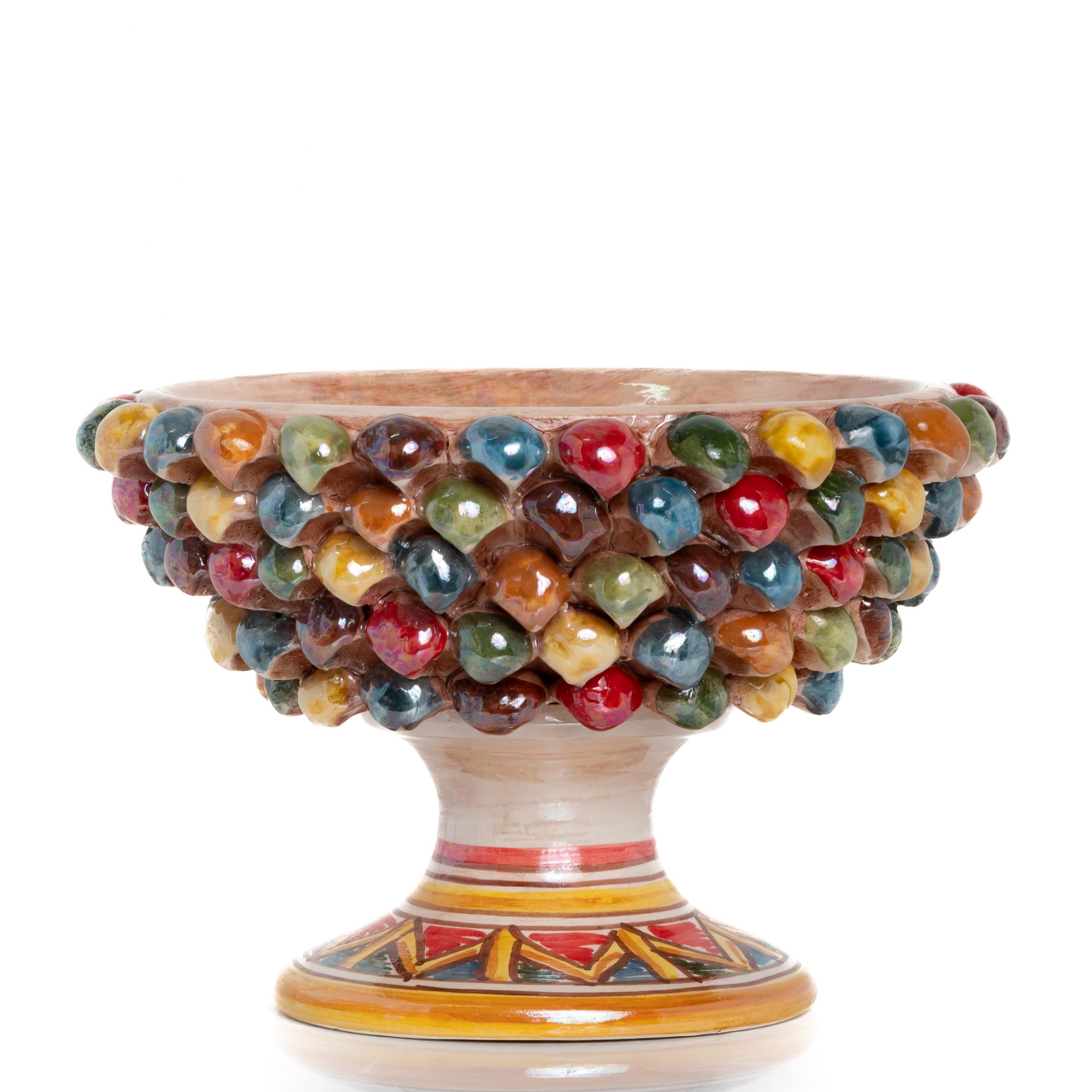 Alzata in ceramica mezza pigna Multicolor interamente realizzata e colorata a mano.