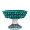Alzata con piede decorato in ceramica mezza pigna Verde Ramina interamente realizzata e colorata a mano.