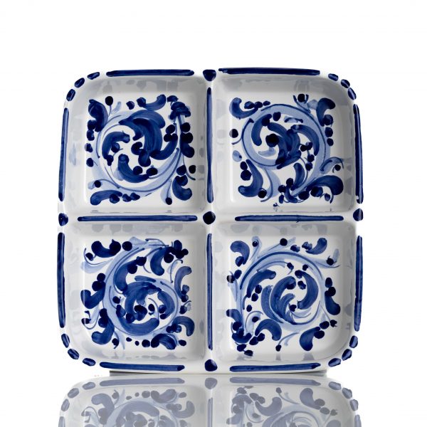 Antipastiera in ceramica interamente realizzata e decorata a mano in stile seicentesco come da trazione di Caltagirone.