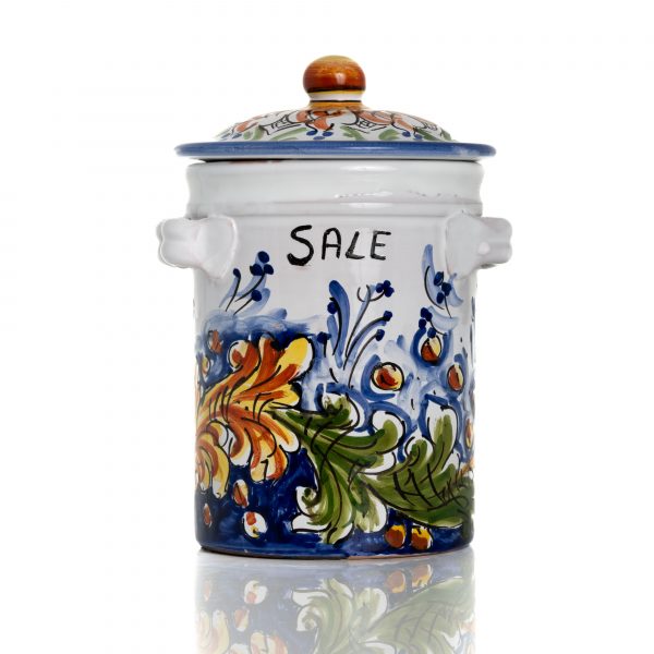 Barattolo porta sale decorato in Ornato come da antica tradizione di Caltagirone.