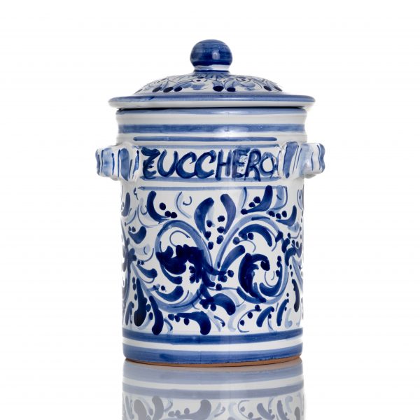 Barattolo zucchero in ceramica decorato in Seicentesco come da antica tradizione di Caltagirone.