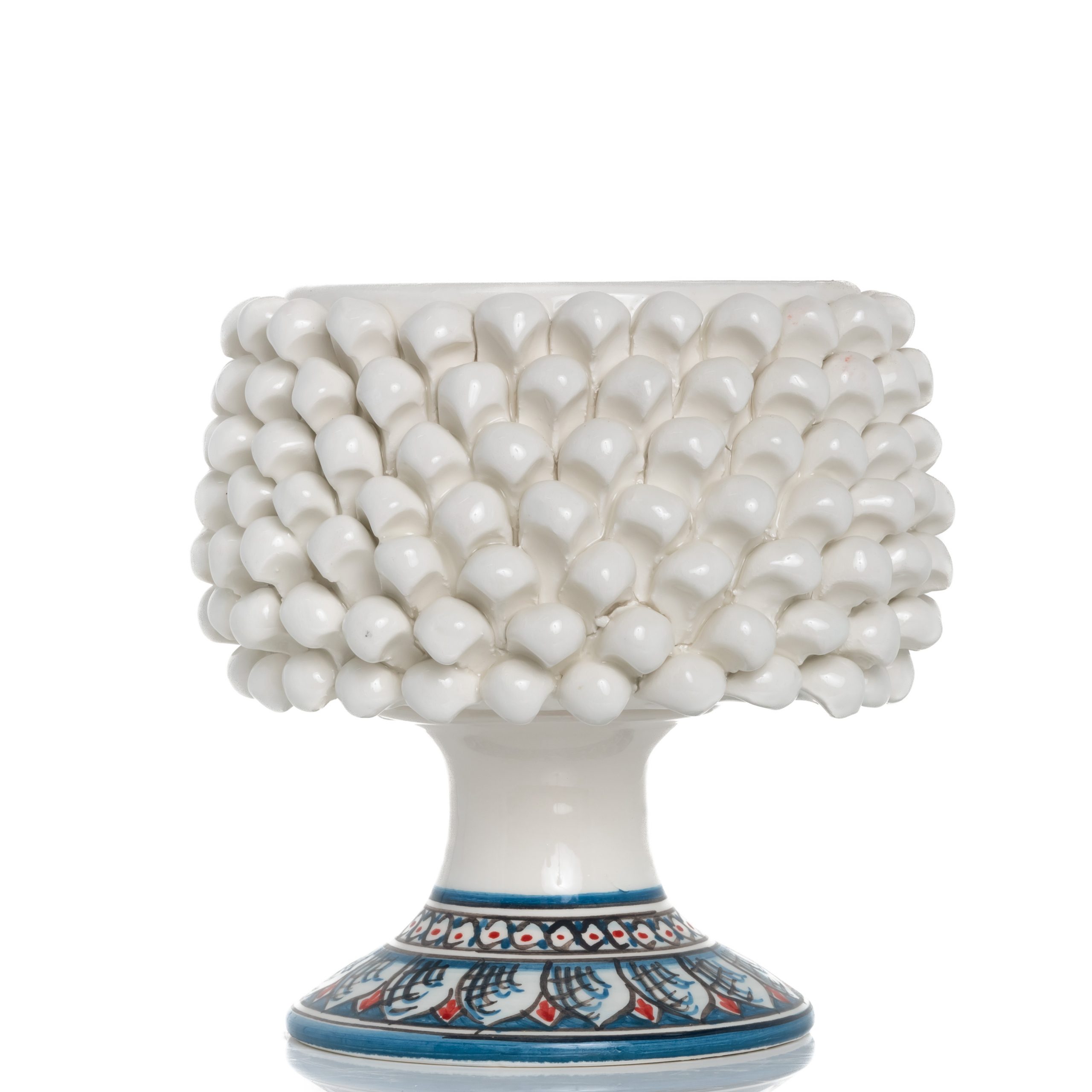 Cachepot mezza pigna Bianco con piede decorato completamente realizzato a mano.