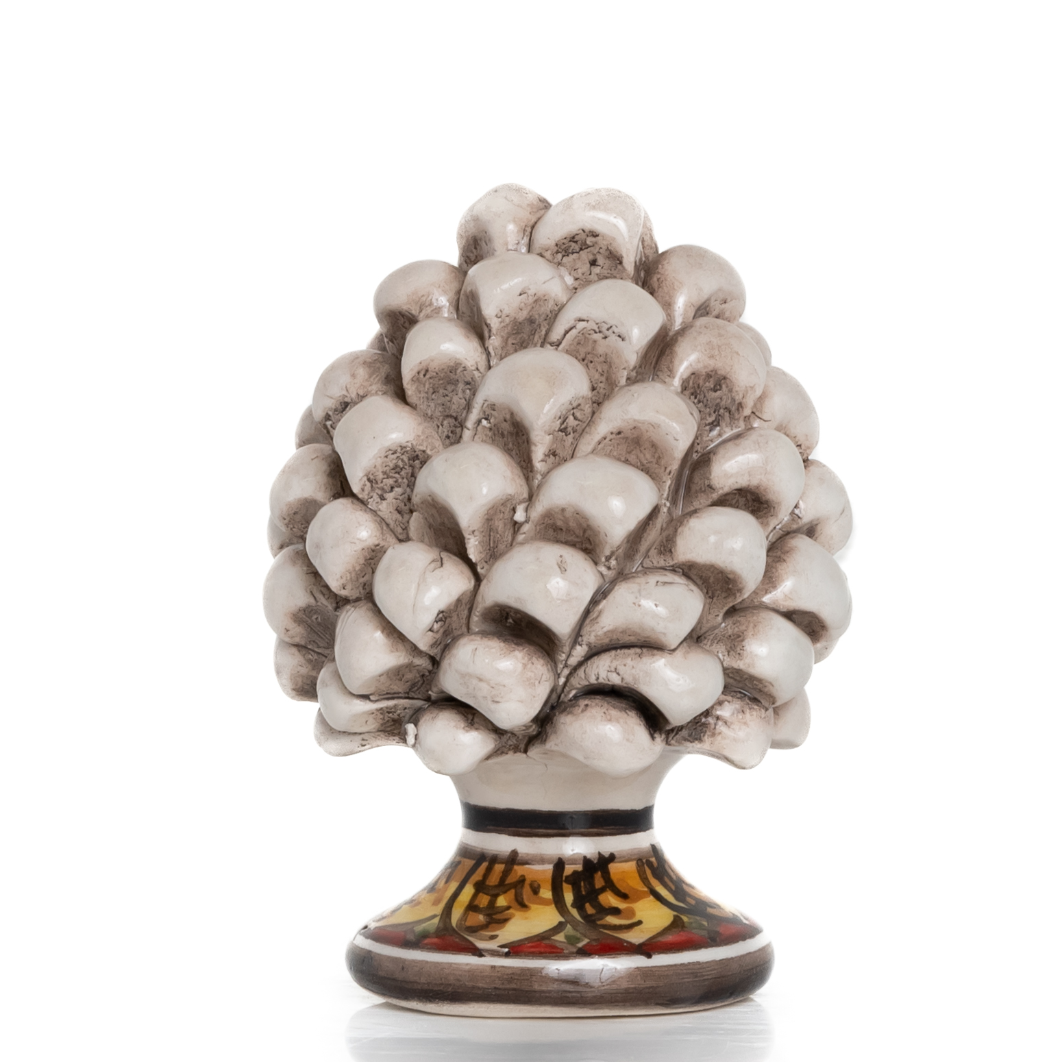 Pigna in ceramica di Caltagirone realizzata interamente a mano con base decorata.