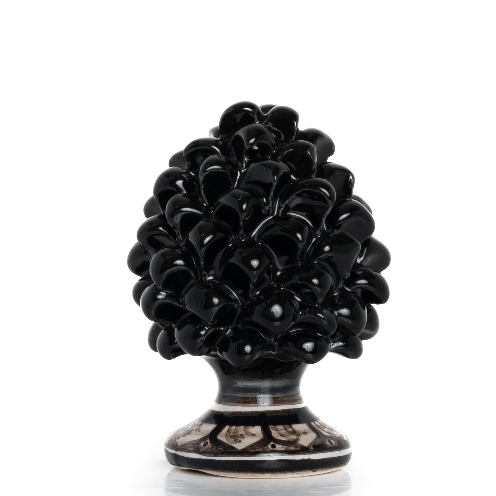 Pigna Nera con base decorata realizzata interamente a mano.