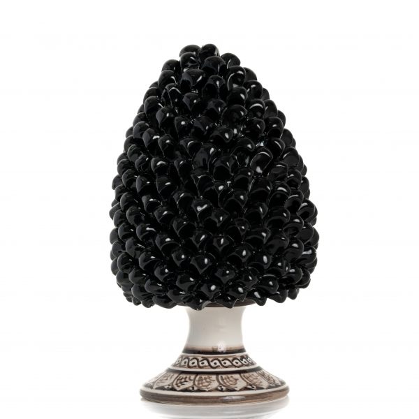 Pigna in ceramica di Caltagirone realizzata interamente a mano con base decorata.