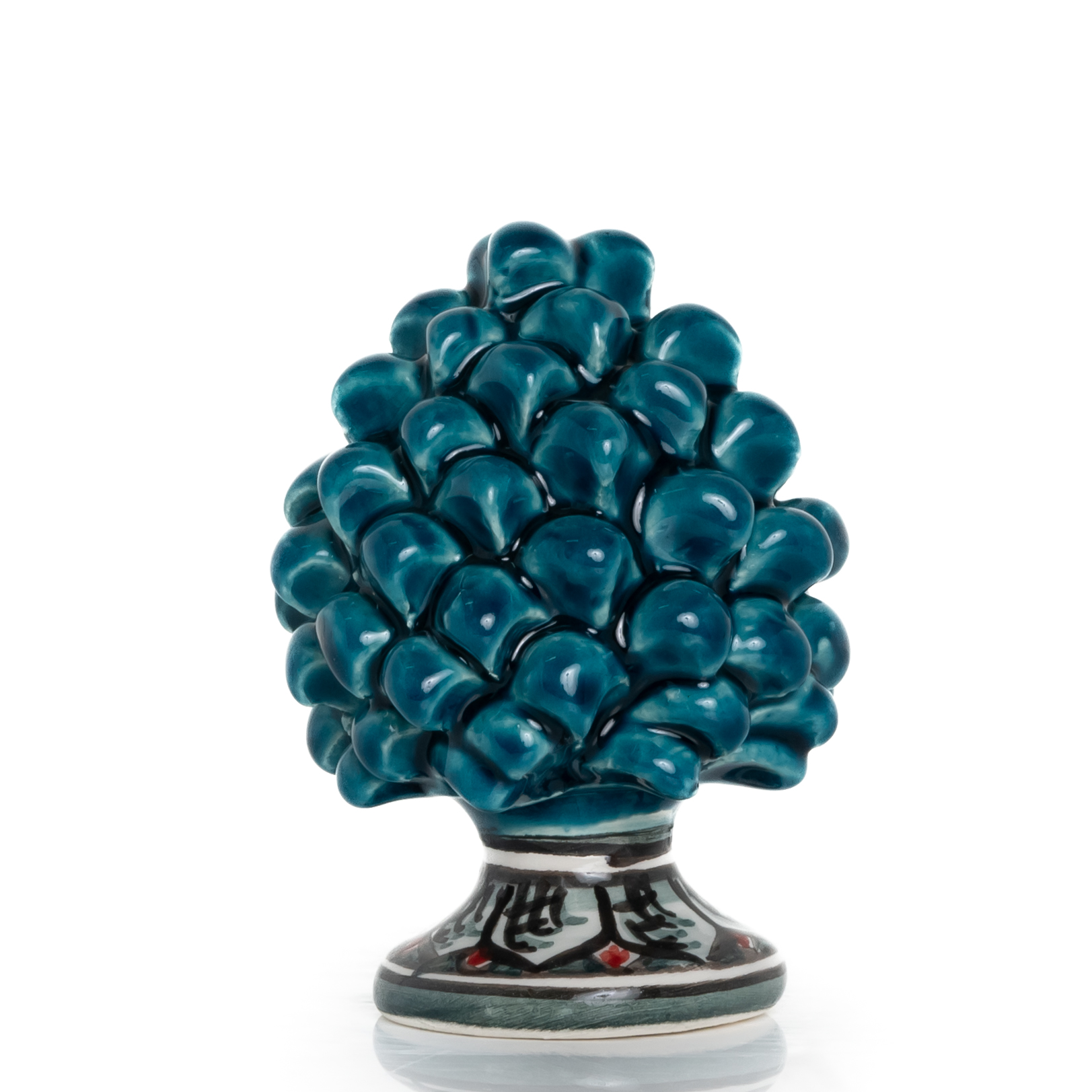 Pigna in ceramica di Caltagirone realizzata interamente a mano con base decorata.