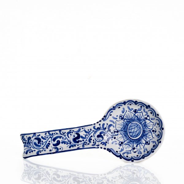 Poggia mestolo in ceramica interamente realizzato e decorato a mano in stile seicentesco come da trazione di Caltagirone.