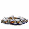 Set da caffè in ceramica interamente realizzato a mano in stile Seicentesco come da trazione di Caltagirone.
