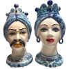 Le teste di Moro sono tipiche dell’arte e dell’artigianato della Sicilia e hanno radici che risalgono all’epoca dell’influenza moresca e araba sull’isola durante il Medioevo. L’arte moresca e araba ha avuto un’influenza significativa sull’architettura, l’artigianato e la cultura siciliana, e le teste di Moro sono un riflesso di questa ereditĂ .