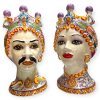 Le teste di Moro sono tipiche dell’arte e dell’artigianato della Sicilia e hanno radici che risalgono all’epoca dell’influenza moresca e araba sull’isola durante il Medioevo. L’arte moresca e araba ha avuto un’influenza significativa sull’architettura, l’artigianato e la cultura siciliana, e le teste di Moro sono un riflesso di questa ereditĂ .