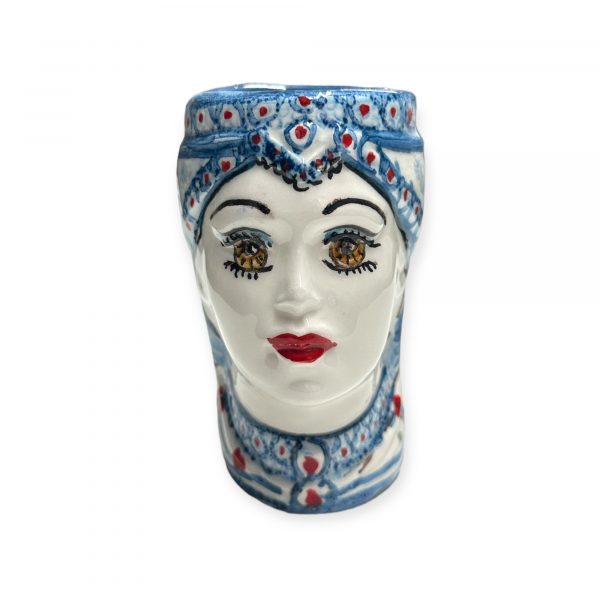 Le teste di Moro sono tipiche dell’arte e dell’artigianato della Sicilia e hanno radici che risalgono all’epoca dell’influenza moresca e araba sull’isola durante il Medioevo. L’arte moresca e araba ha avuto un’influenza significativa sull’architettura, l’artigianato e la cultura siciliana, e le teste di Moro sono un riflesso di questa ereditĂ .