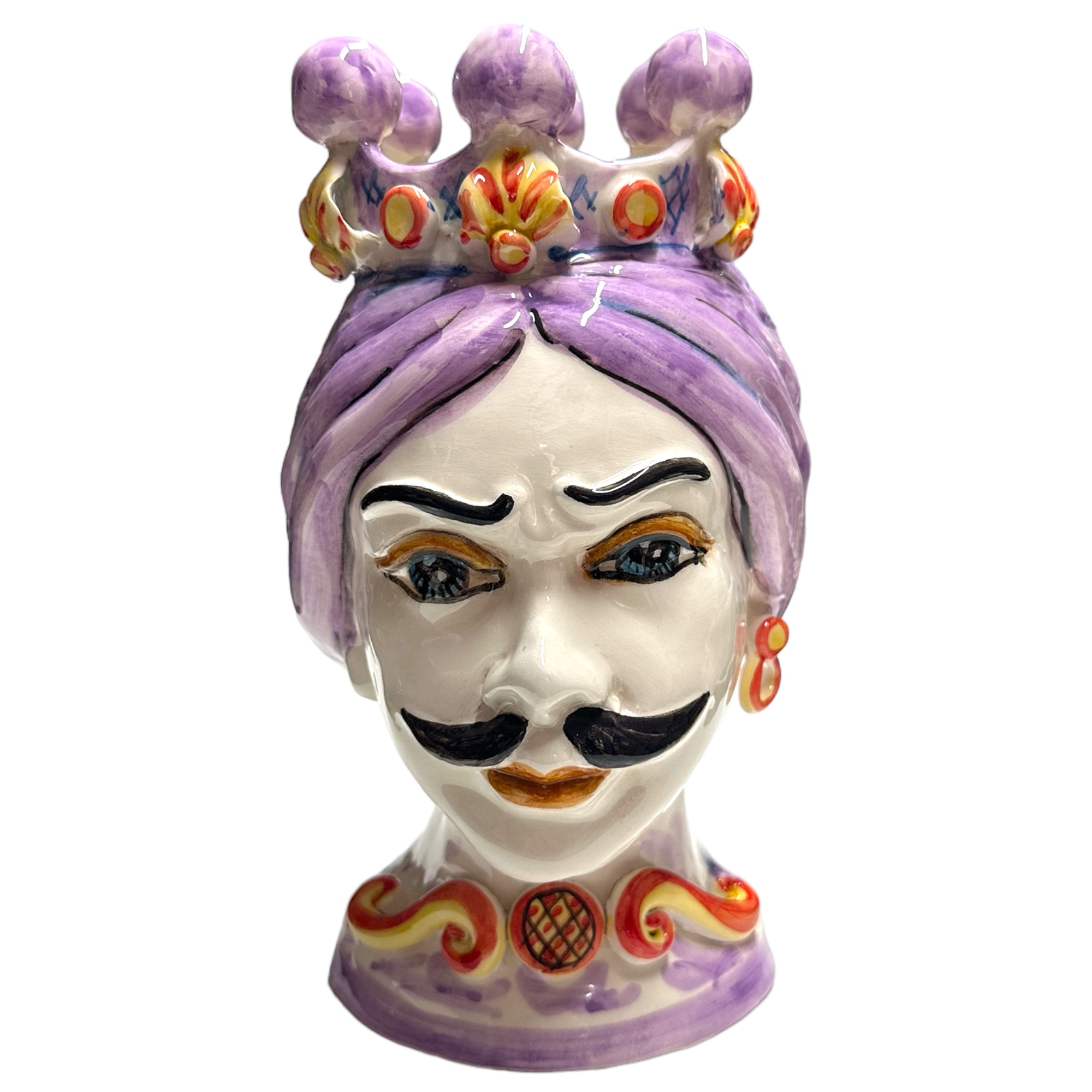 Le teste di Moro sono tipiche dell’arte e dell’artigianato della Sicilia e hanno radici che risalgono all’epoca dell’influenza moresca e araba sull’isola durante il Medioevo. L’arte moresca e araba ha avuto un’influenza significativa sull’architettura, l’artigianato e la cultura siciliana, e le teste di Moro sono un riflesso di questa ereditĂ .