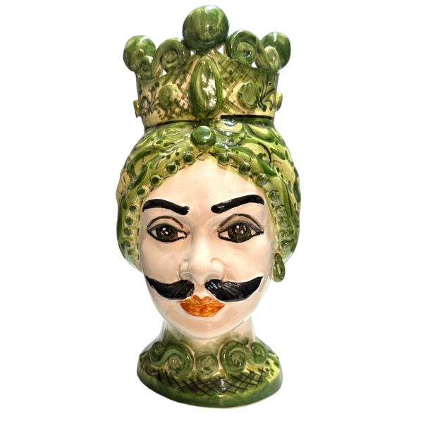 Le teste di Moro sono tipiche dell’arte e dell’artigianato della Sicilia e hanno radici che risalgono all’epoca dell’influenza moresca e araba sull’isola durante il Medioevo. L’arte moresca e araba ha avuto un’influenza significativa sull’architettura, l’artigianato e la cultura siciliana, e le teste di Moro sono un riflesso di questa ereditĂ .