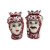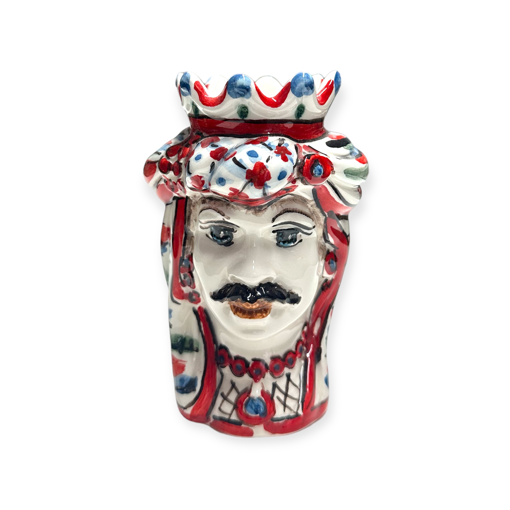 Le teste di Moro sono tipiche dell’arte e dell’artigianato della Sicilia e hanno radici che risalgono all’epoca dell’influenza moresca e araba sull’isola durante il Medioevo. L’arte moresca e araba ha avuto un’influenza significativa sull’architettura, l’artigianato e la cultura siciliana, e le teste di Moro sono un riflesso di questa ereditĂ .