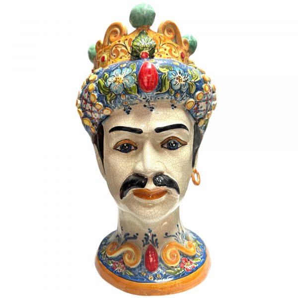 Le teste di Moro sono tipiche dell’arte e dell’artigianato della Sicilia e hanno radici che risalgono all’epoca dell’influenza moresca e araba sull’isola durante il Medioevo. L’arte moresca e araba ha avuto un’influenza significativa sull’architettura, l’artigianato e la cultura siciliana, e le teste di Moro sono un riflesso di questa ereditĂ .