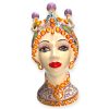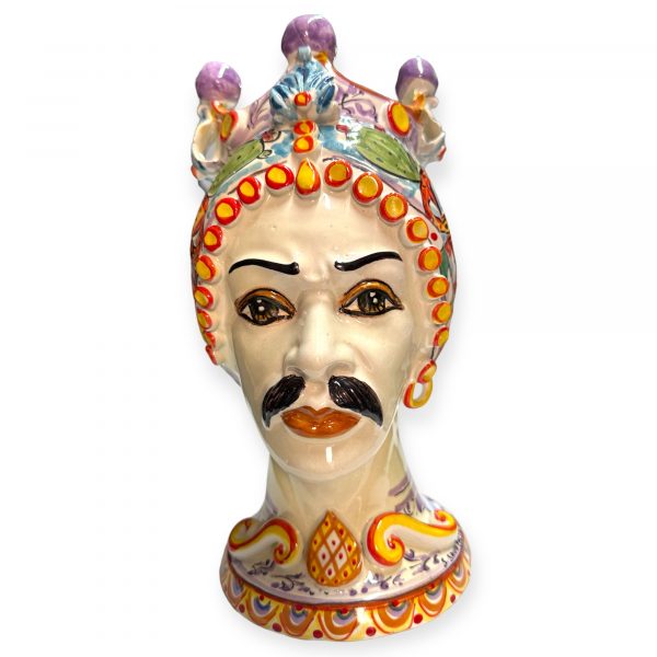 Le teste di Moro sono tipiche dell’arte e dell’artigianato della Sicilia e hanno radici che risalgono all’epoca dell’influenza moresca e araba sull’isola durante il Medioevo. L’arte moresca e araba ha avuto un’influenza significativa sull’architettura, l’artigianato e la cultura siciliana, e le teste di Moro sono un riflesso di questa ereditĂ .