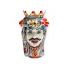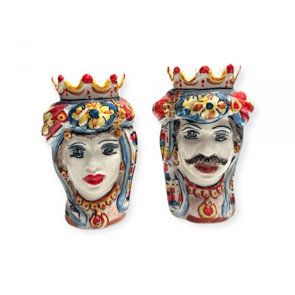 Le teste di Moro sono tipiche dell’arte e dell’artigianato della Sicilia e hanno radici che risalgono all’epoca dell’influenza moresca e araba sull’isola durante il Medioevo. L’arte moresca e araba ha avuto un’influenza significativa sull’architettura, l’artigianato e la cultura siciliana, e le teste di Moro sono un riflesso di questa ereditĂ .