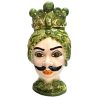Le teste di Moro sono tipiche dell’arte e dell’artigianato della Sicilia e hanno radici che risalgono all’epoca dell’influenza moresca e araba sull’isola durante il Medioevo. L’arte moresca e araba ha avuto un’influenza significativa sull’architettura, l’artigianato e la cultura siciliana, e le teste di Moro sono un riflesso di questa ereditĂ .