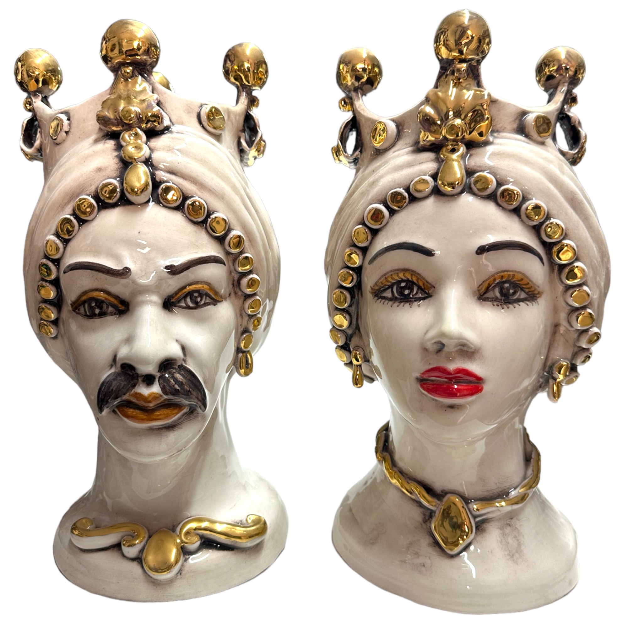 Le teste di Moro sono tipiche dell’arte e dell’artigianato della Sicilia e hanno radici che risalgono all’epoca dell’influenza moresca e araba sull’isola durante il Medioevo. L’arte moresca e araba ha avuto un’influenza significativa sull’architettura, l’artigianato e la cultura siciliana, e le teste di Moro sono un riflesso di questa eredità.